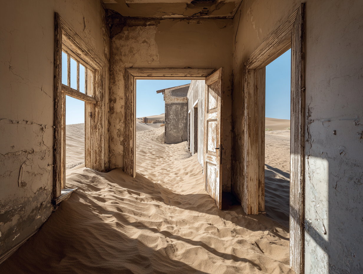 A short drive from the coastal town of Lüderitz lies one of Africa’s most photographed ghost towns: Kolmanskop. Once a glittering diamond settlement in the early 1900s, this German-built town had everything — grand homes, an ice factory, a bowling alley, even a concert hall. But when richer diamond fields were discovered further south, residents packed up and left, leaving the desert to reclaim their dream.